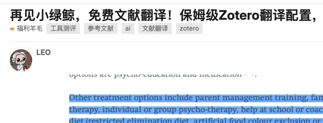 首先,它避免了一上来就对整篇论文进行“通篇翻译”。这种机械式的全文翻译,往往会在不知不觉中破坏论文原本的逻辑结构和表达层次,让人产生“好像看懂了,其实没真正理解”的错觉。Zotero 的翻译方式更克制,也更符合科研阅读的真实过程。