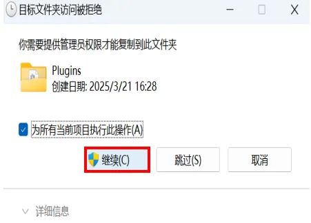 3、将刚刚压缩包中的第二个文件夹中的文件复制至Plugins文件夹
