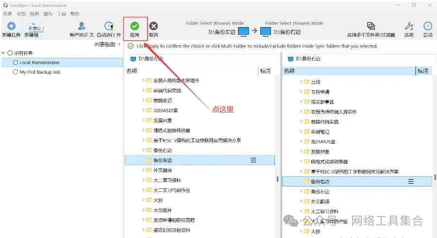 好啦,接下来开始备份啦,记清楚是左边往右边备份,也就是左边会全部覆盖右边哦