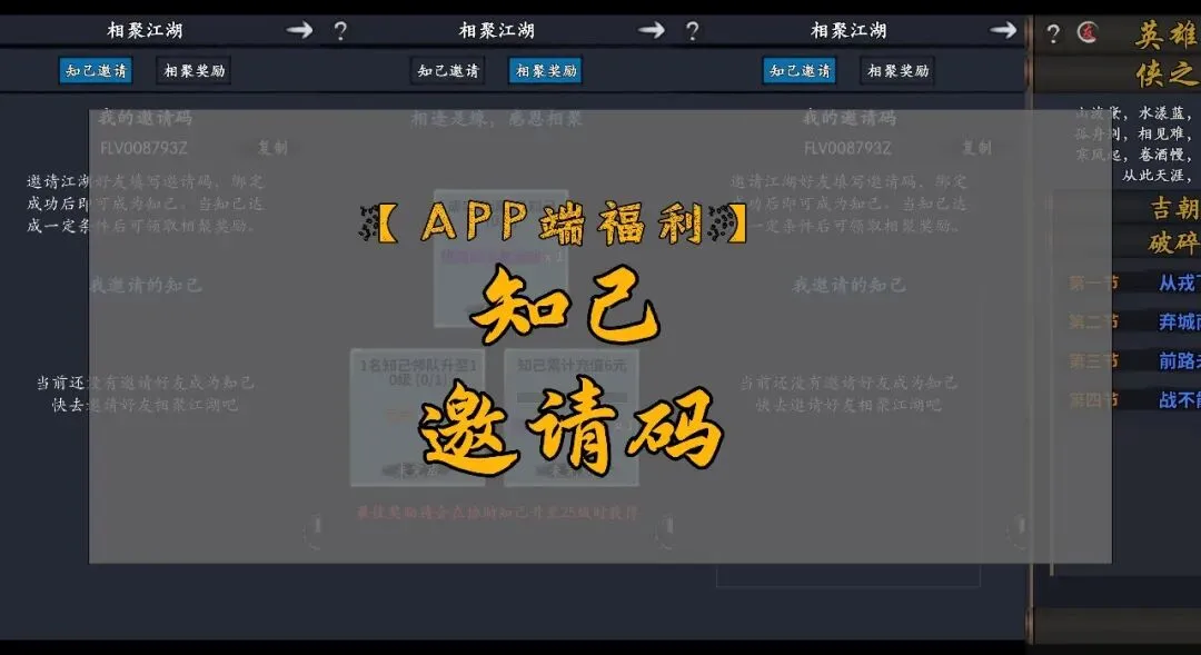 【APP端游戏福利】知己邀请码