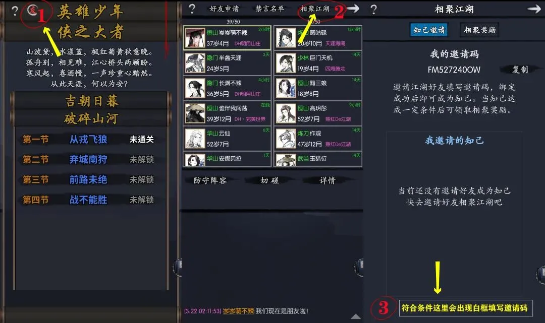 邀请人成功后,可以在自己的相聚江湖主界面看到被邀请人。