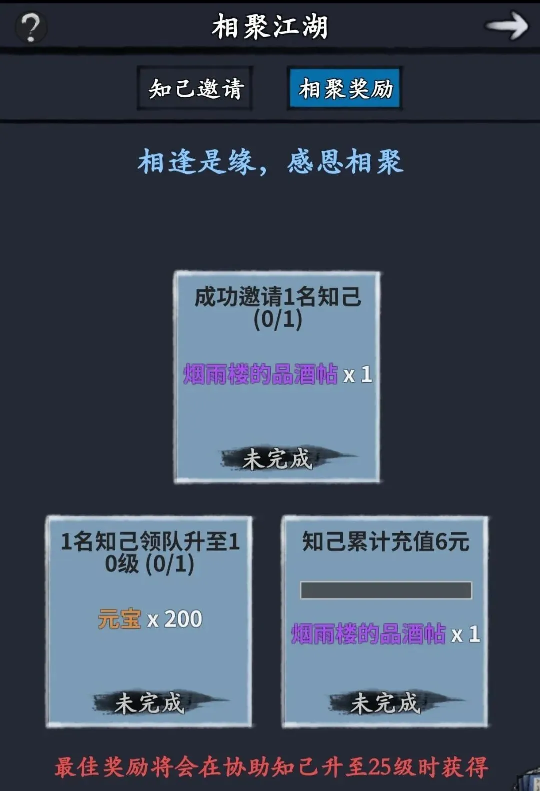 在【相聚奖励】界面,邀请人可以根据条件领取奖励。下面是条件和奖励明细。