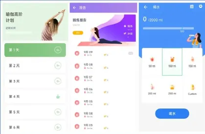 除了瑜伽学习练习,它还支持的功能包括:体重日记、训练提醒、喝水记录等。