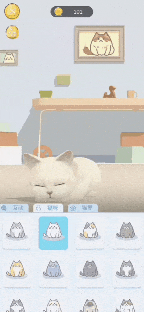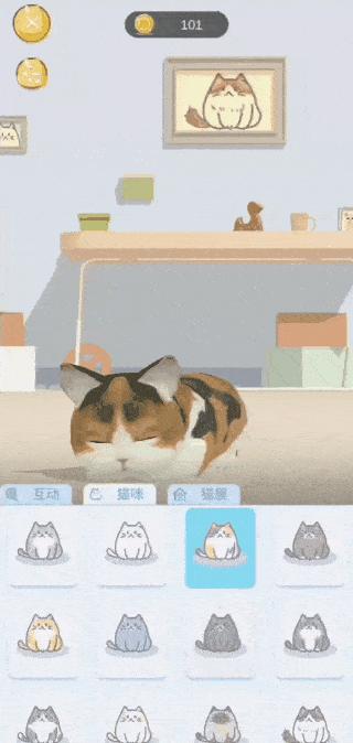 你可以帮助猫咪成长,也可以和猫咪互动;也就是说你需要完成睡眠计划来解锁猫咪食物、装饰等。