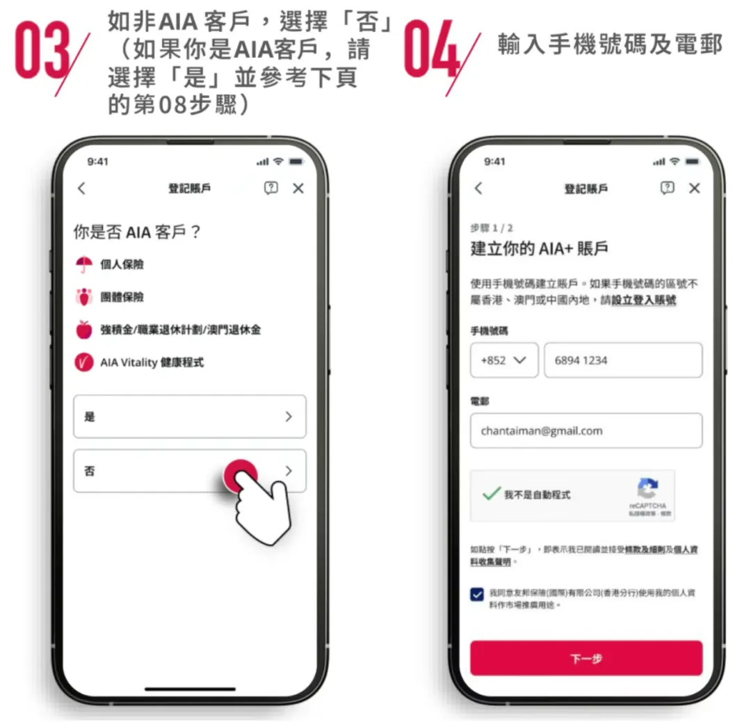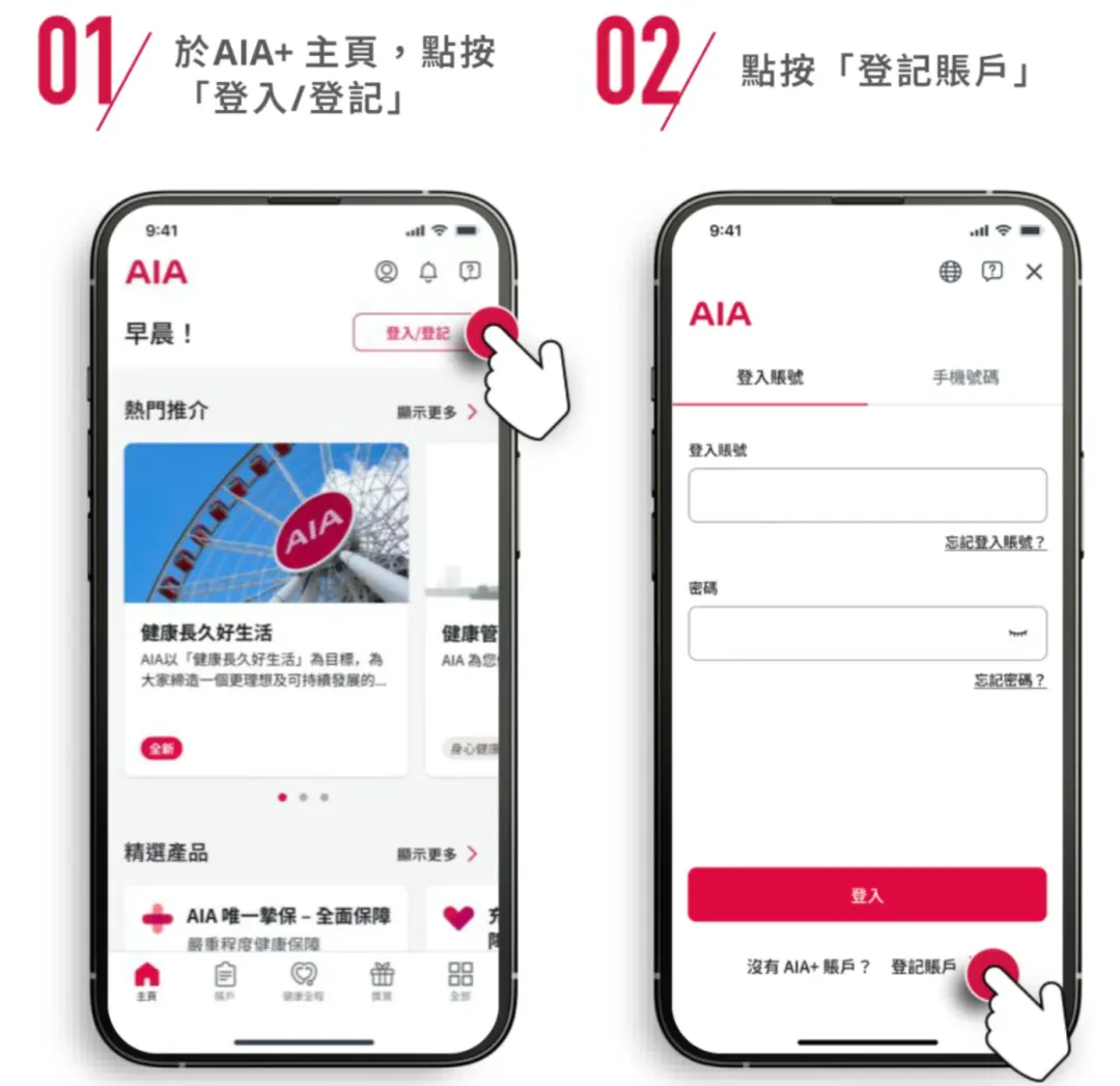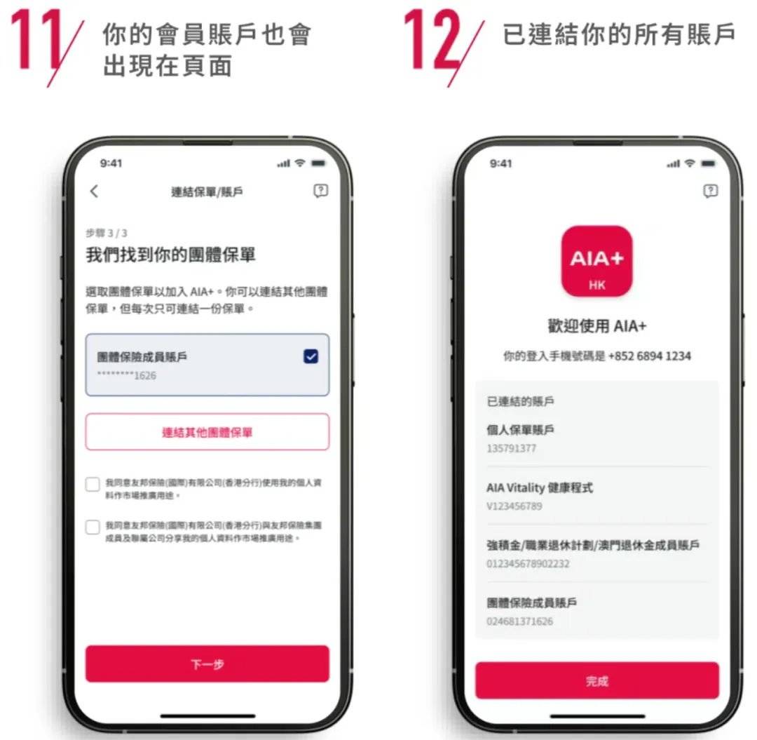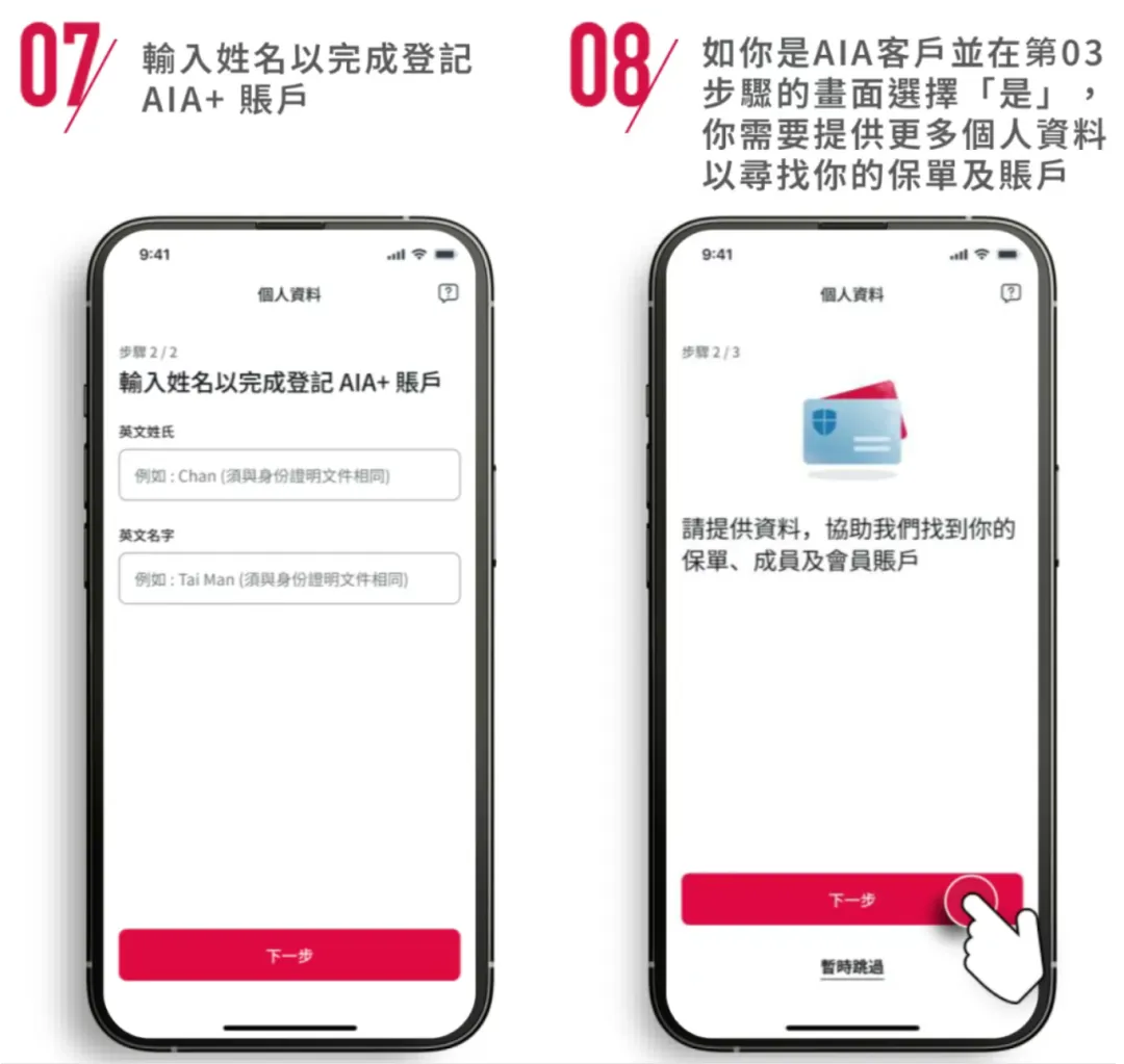 ③登记个人资料(身份证、姓名、生日)——找到AIA账户——连结所有账户——可录入Face ID,启用Face ID登入