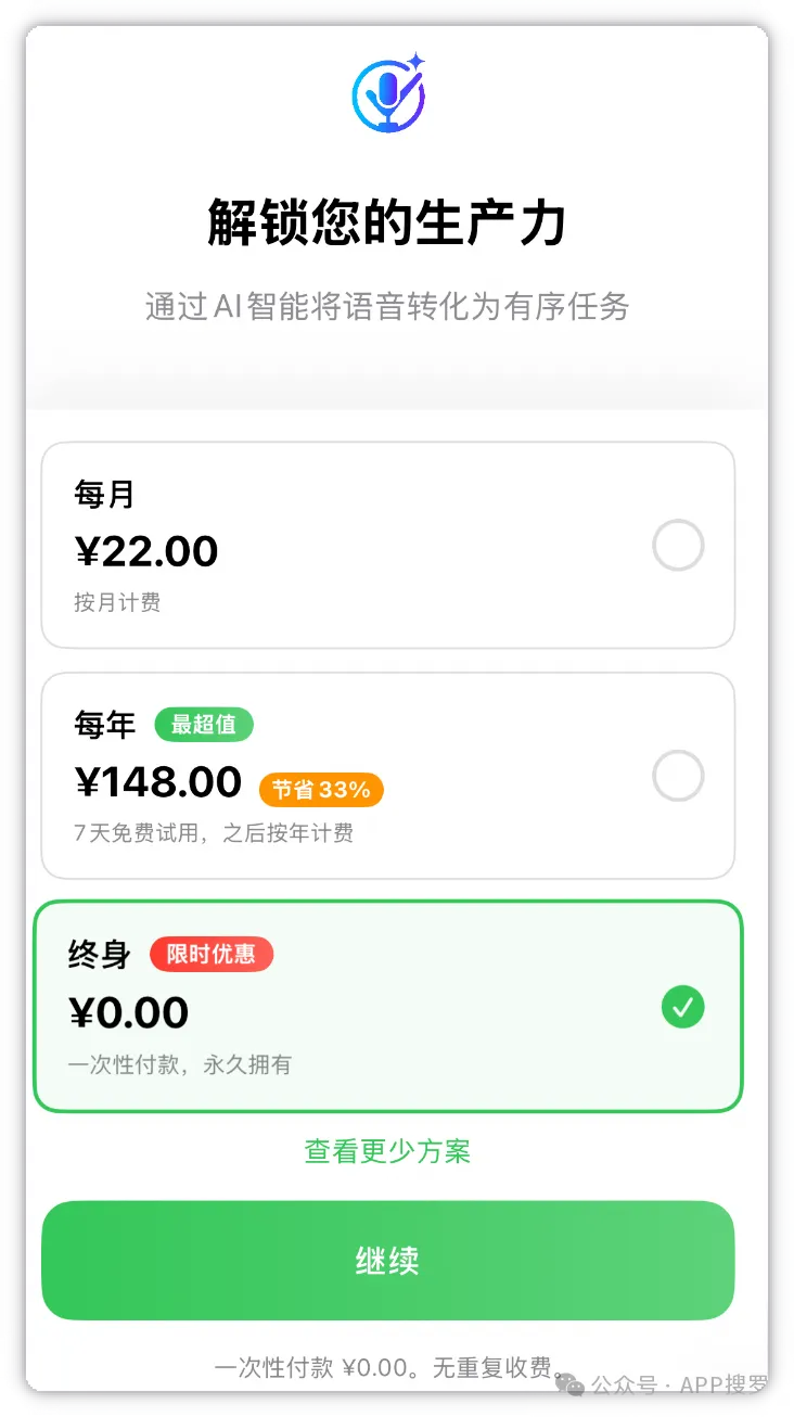 相信很多人现在都在使用iPhone的备忘录APP吧,它可以让你每天的工作学习日程安排的明明白白的,不过iPhone备忘录也有很多局限,使用操作还是挺费时间的,今天天我给大家分享的是这款 Ai语音待办事项。支持iPhone和iPad安装使用。这也是首次在App Store限免。