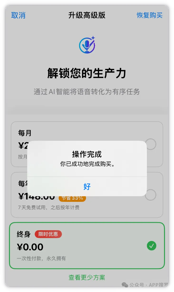 好消息是,这款软件正在限免中,原本也是需要大几百才能解锁永久会员,搜罗君早上7点测试还是在限免中的。