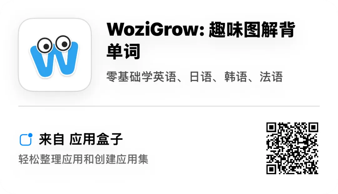 应用介绍:用收集可爱贴纸的方式记单词!专为初学者设计的视觉化单词卡 App。支持英语、日语、韩语、法语等17种语言。无广告,纯净体验。不要死记硬背。来收集单词吧。WoziGrow 让语言学习变得像游戏一样有趣。这是一款专为初学者设计的”视觉化”单词卡 App。每学会一个单词,你就能解锁一张独特的可爱手绘贴纸——从微笑的草莓到暴躁的小猫。
