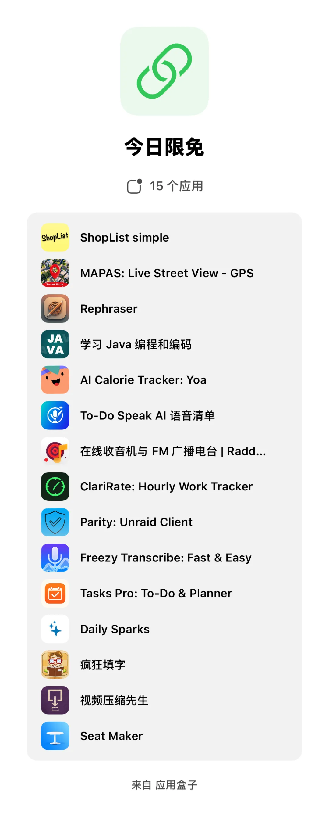 iOS丨App限免:终身会员!全球电台FM收音机、AI 语音待办事项、购物清单、学习Java编程、工时记录、音频转文本、视频压缩等工具与游戏!