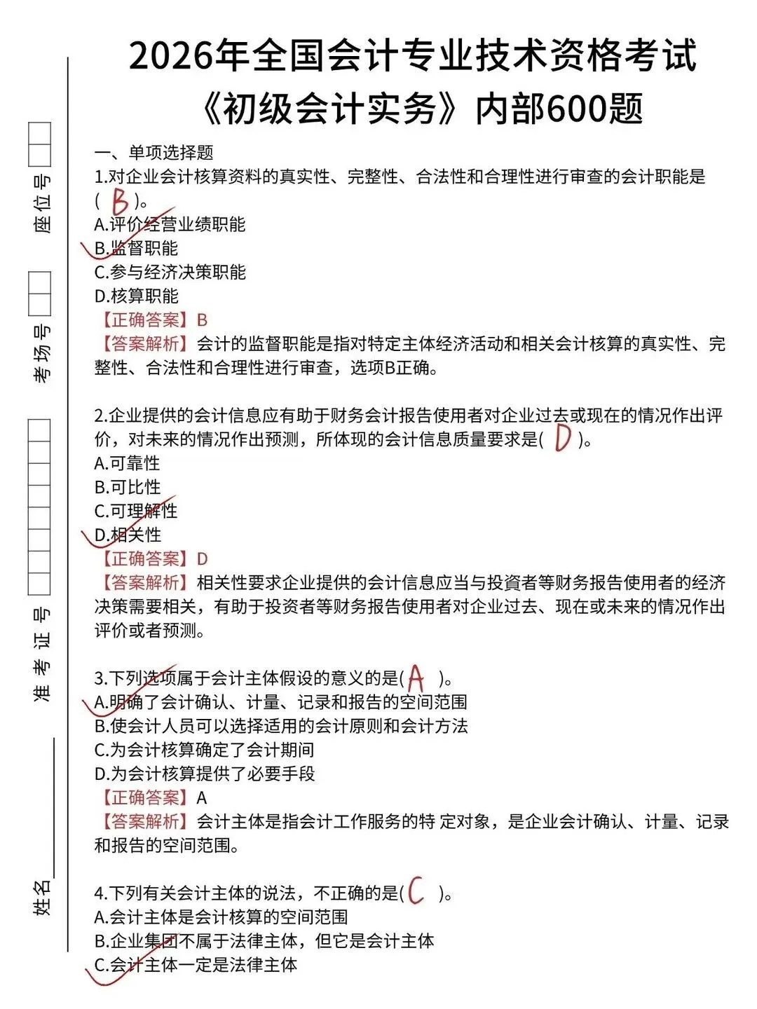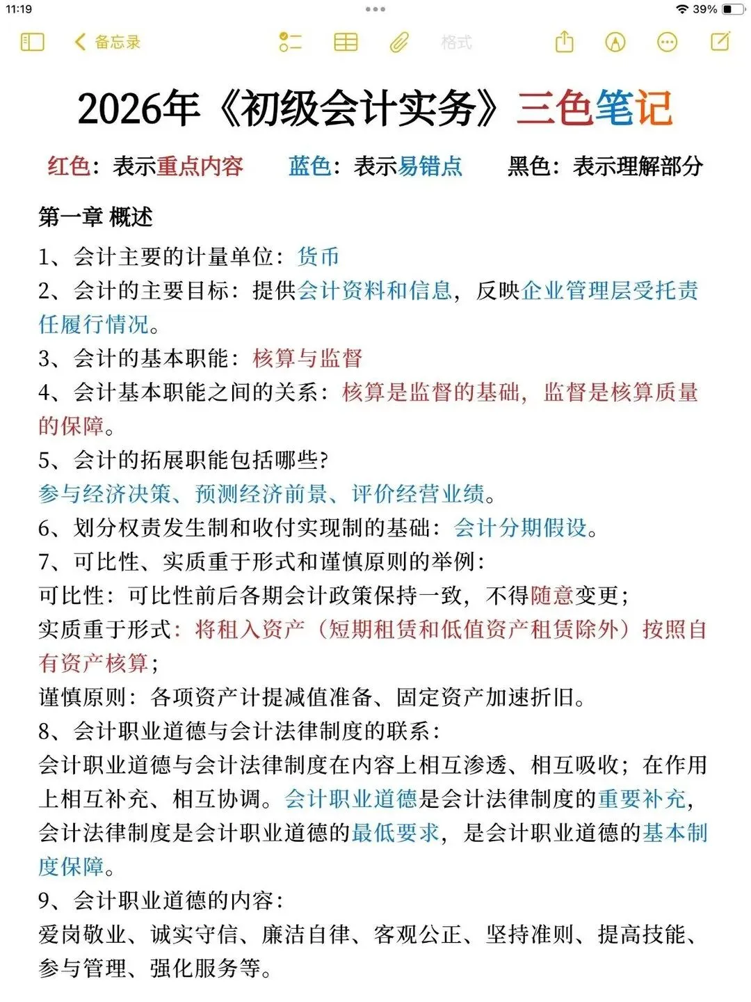 友情提醒一下,备考26初级会计的人!初会考试是机考,请大胆用这个系统1:1上机模拟,既能提前熟悉机考操作,又能随时随地刷题,里面还有很多题源,直接用赢麻了 . 科目备考顺序&重点章节 《初级会计实务》 【1】备考顺序:第3-4-5-6-7-8-1-2-9-10章 【2】 核心重点:第3、4、5、7章(分值占比75%) 第3章:流动资产(15分,常考不定项) 第4章:非流动资产(25分,综合性强) 第5章:负债(15分,多题型考查) 第7章:收入费用和利润(20分,计算和运用) . 《经济法基础》 【1】备考顺序:第3-4-5-8-1-2-6-7章 【2】核心重点:第3、4、5、8章(分值占比75%) 第3章:支付结算(15分,支付结算、支付机构) 第4章:税法概述(20分,税种计算 第5章:所得税法(25分,所得税的计算和处理) 第8章:劳动合同(15分,近几年常考) . ‼️为了更好的帮助到大家,我精心整理了一些备考工具 ①:学习打卡表(监督打卡,自律备考) ②:三色笔记(50页核心重点直接背) ③:思维导图(搭建知识框架) ④…