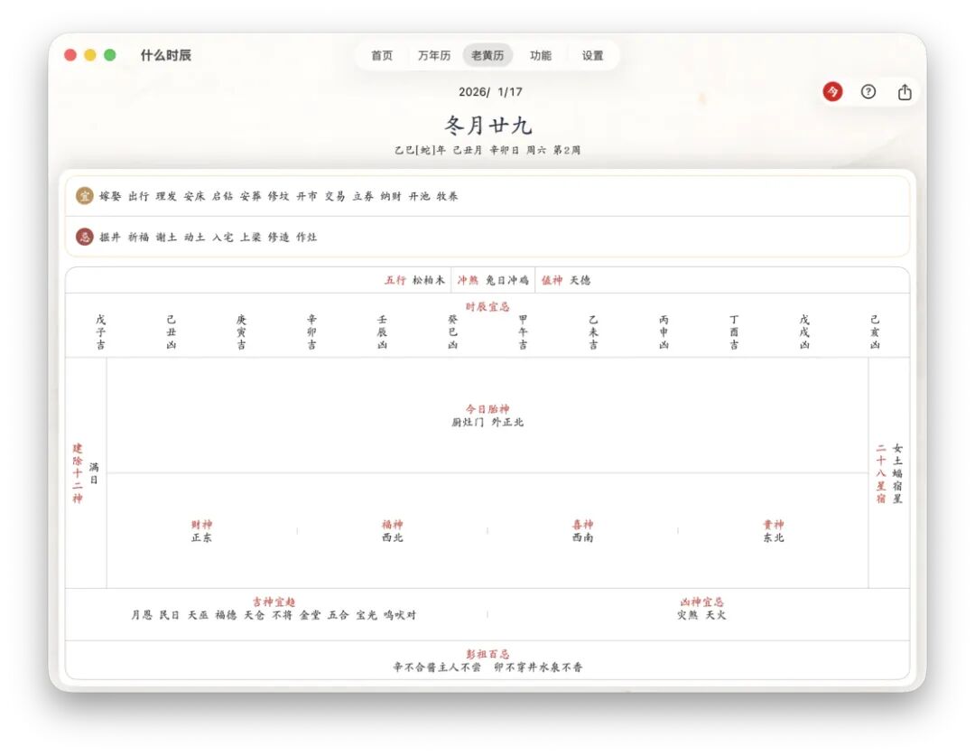 ▍什么时辰:结合日历、万年历和黄历的趣味时间应用