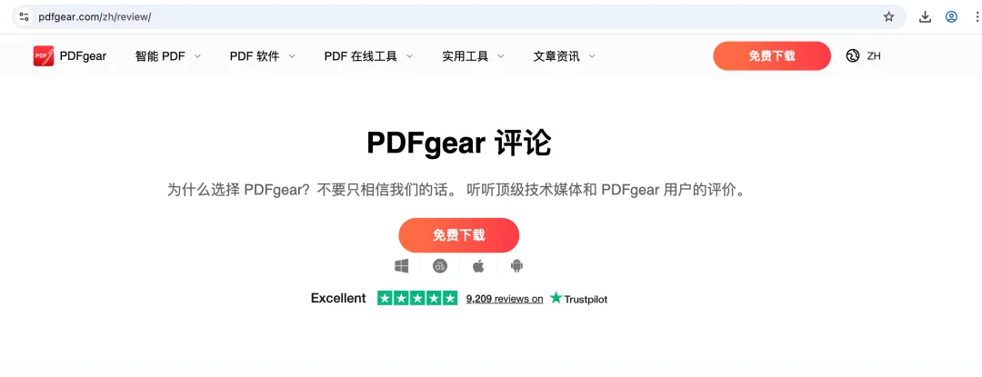 获取方式:直接访问官网 https://www.pdfgear.com/zh/review/即可开始使用。无论是在线工具还是客户端下载,都是完全免费的。