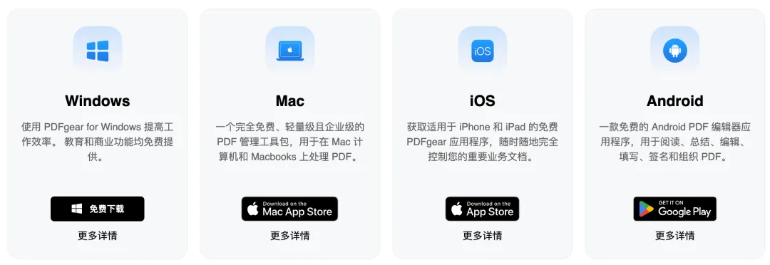 PDFgear支持Windows 10/11、macOS 10.4及以上系统,包括M1芯片设备,以及iOS 14.0及以上的移动设备。无论您使用电脑、平板还是手机,都能享受一致的流畅体验。