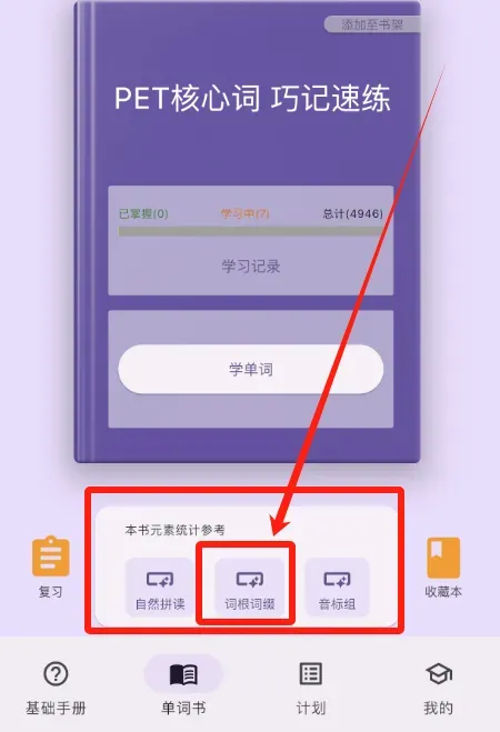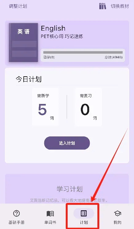 例如距离PET开考还有3个月,那么可以在“计划”这里制定背单词计划。
