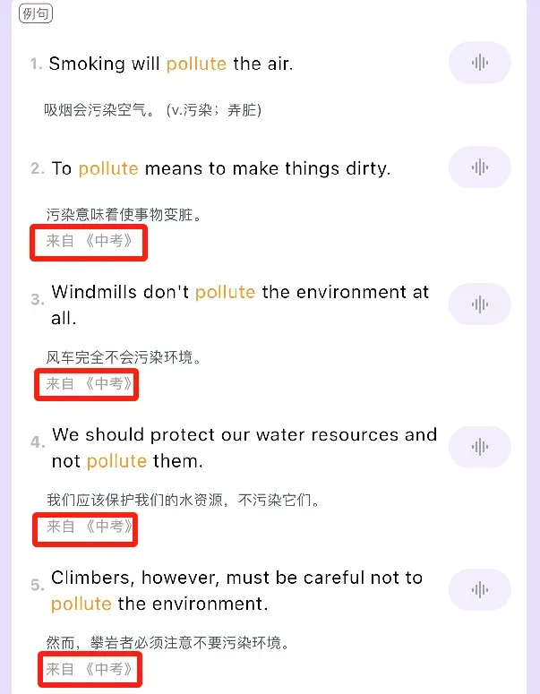 同时也有例句,例句的来源也标注出来了,可以帮助孩子在语境中理解单词含义。