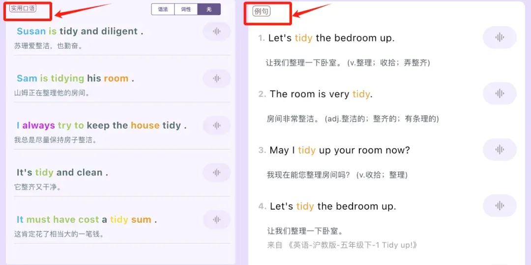 也有实用口语和例句,帮助孩子理解单词的使用。