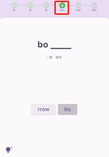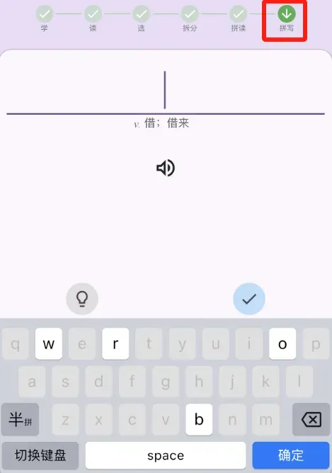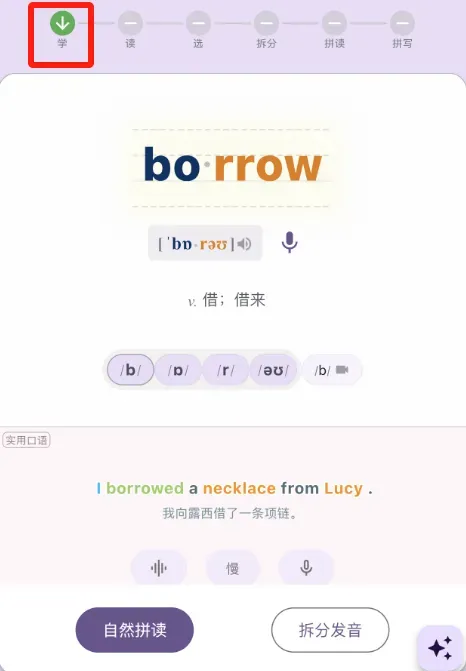 学联一体则是一整套完整的学-练-检测的过程,包含六个步骤:学——练——选——拆分——拼读——拼写。