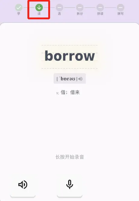 第二步:读。练习口语发音,跟读之后还有系统评分。