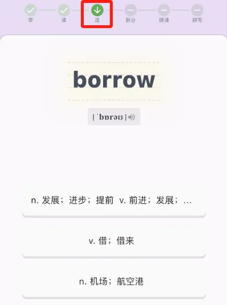 第三步:选。这一步是检验孩子是否记住单词含义,进行中英匹配。