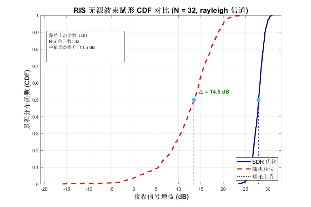 。这表示 RIS 仅改变相位,不放大信号(理想无源)。 -