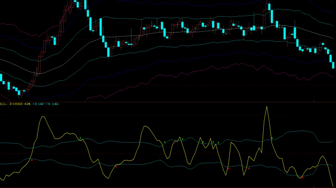 新布林极限:EMA2((X_1-MA(X_1,18))*1000/(15*AVEDEV(X_1,18))/500,2)*10,COLORYELLOW,LINETHICK2;