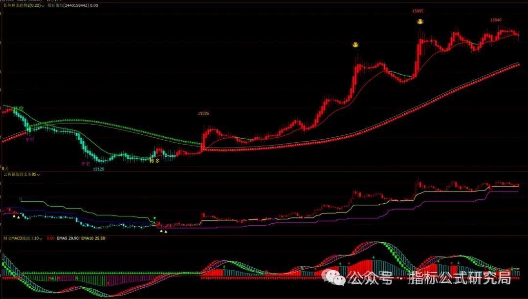 财宝macd波段王幅图:macd改良版,多空趋势,反转柱