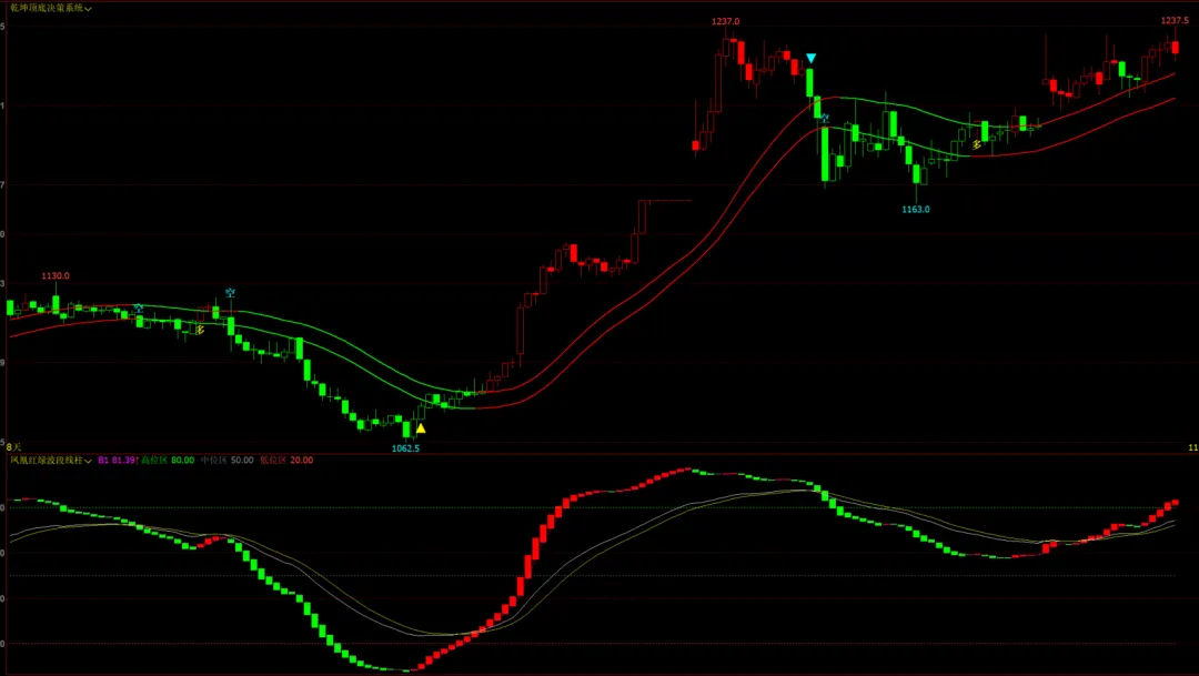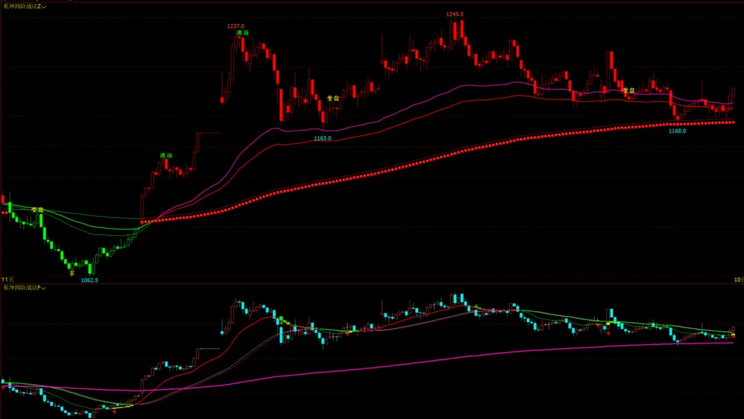 乾坤神龙趋势2主图:趋势信号,短线波段信号,多空K变色,开多开空平
