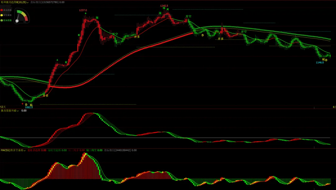 乾坤擒龙趋势主图:趋势判断,顶底dk信号,支撑压力画线