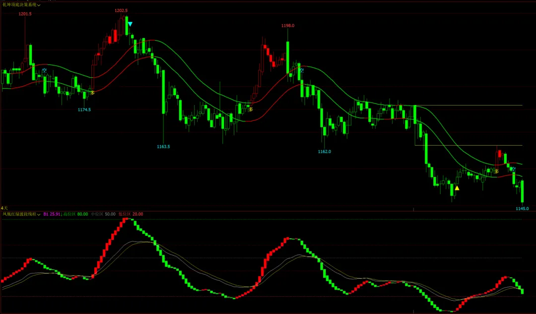 乾坤顶底决策主图:双轨道趋势线,多空信号,开盘时间画线