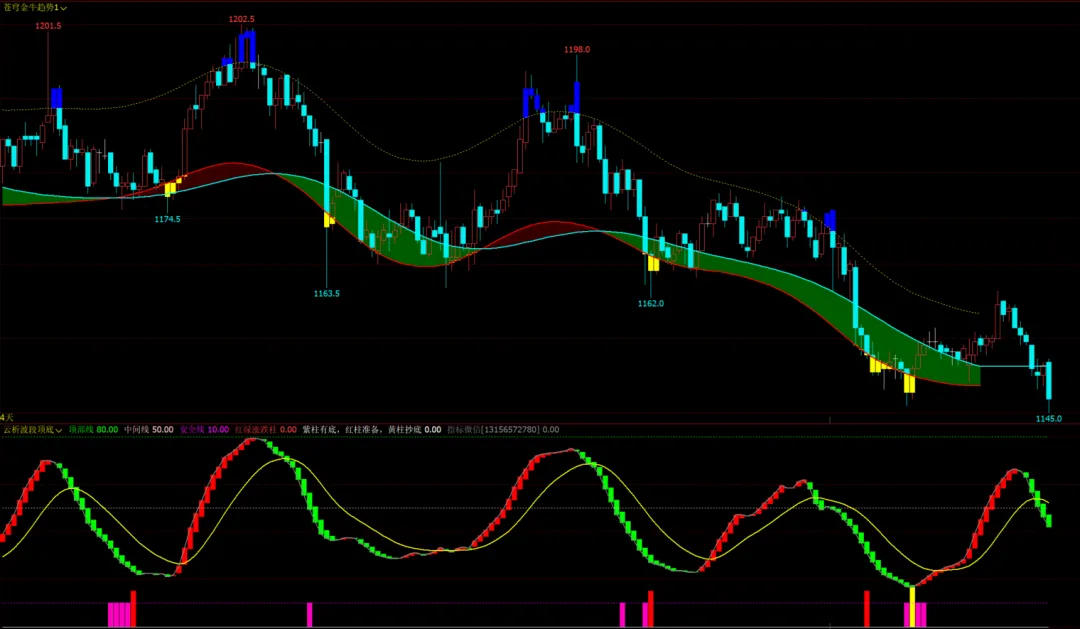 云析波段顶底幅图:红绿多空柱,趋势线,顶底柱
