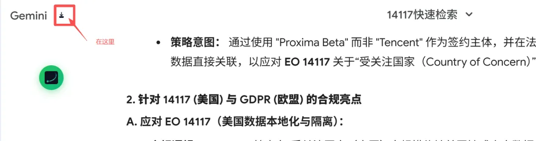 插件安装好后,Gemini图标的右方会出现“导出”按钮,点击该按钮就可以选择PDF或者Markdown格式的导出。