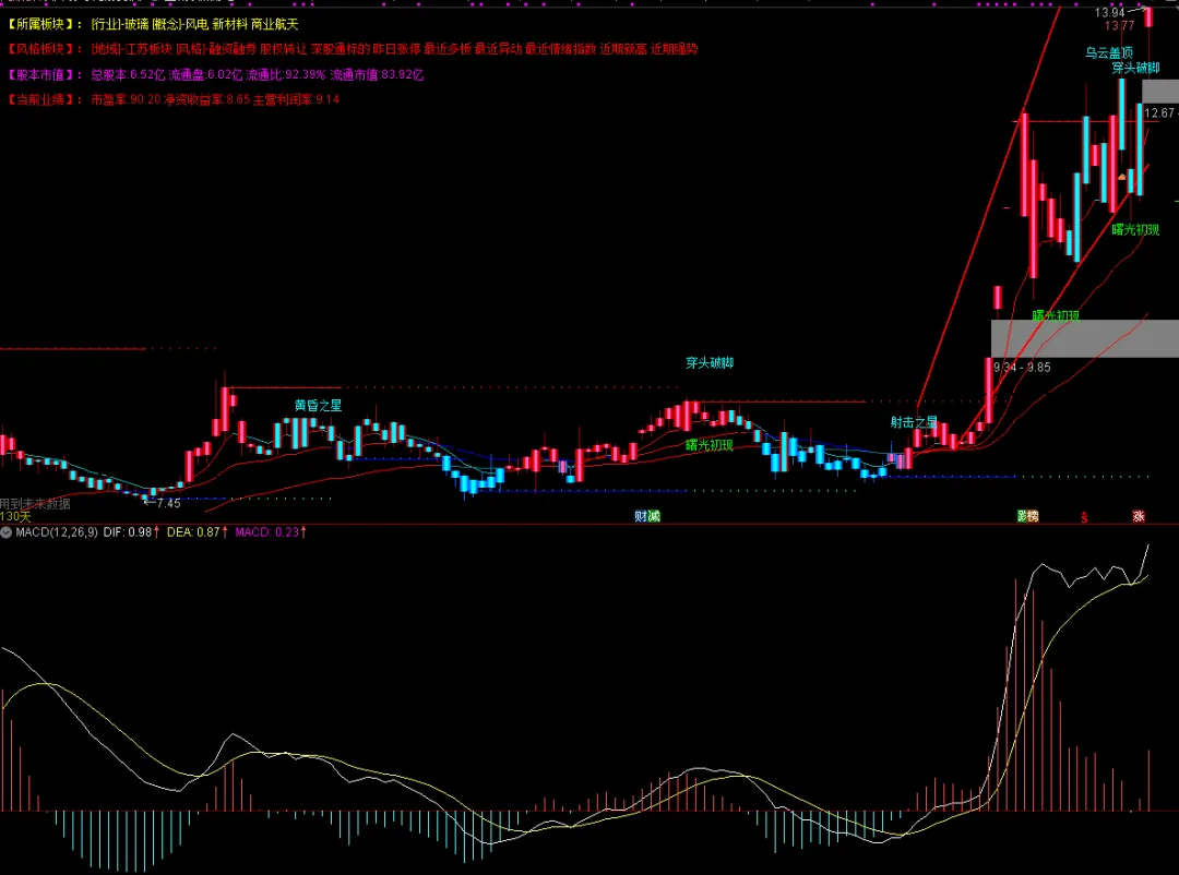 DRAWTEXT_FIX(ISLASTBAR,0.005,0.12,0,股本市值),COLORMAGENTA;