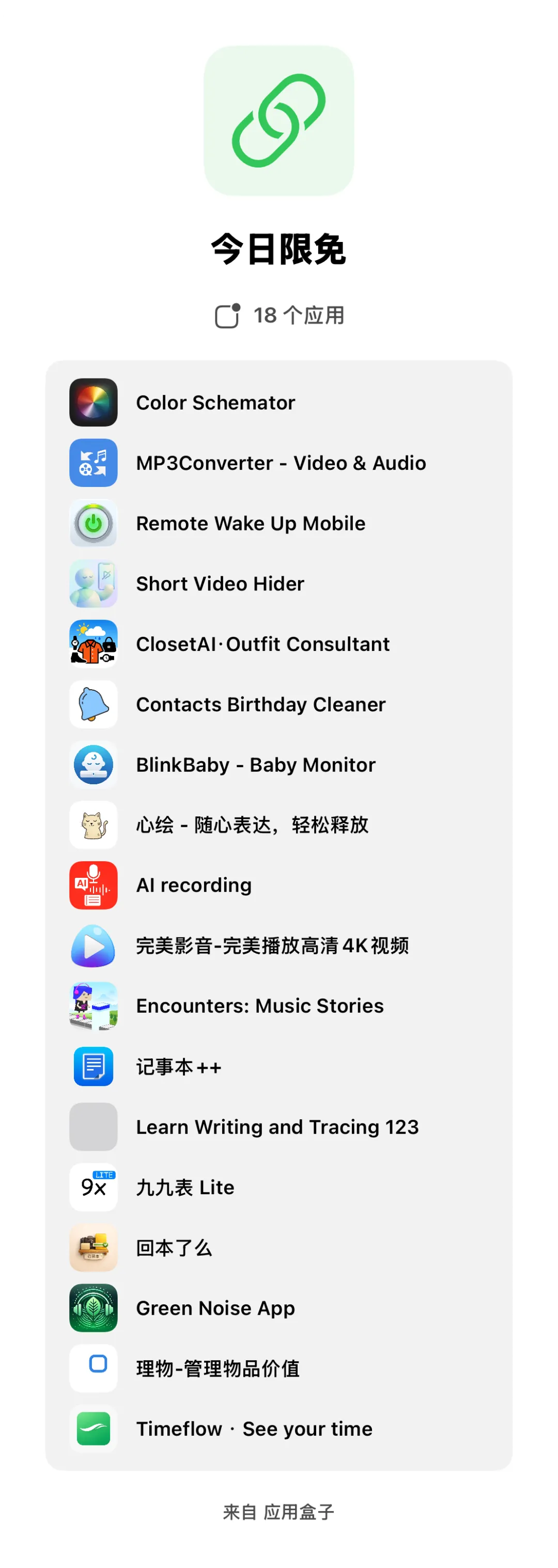 iOS丨App限免:终身会员!白噪音、物品价值管理、使用成本追踪、AI语音笔记、AI智能穿搭、音视频转换、跟踪应用使用情况等工具与小游戏!