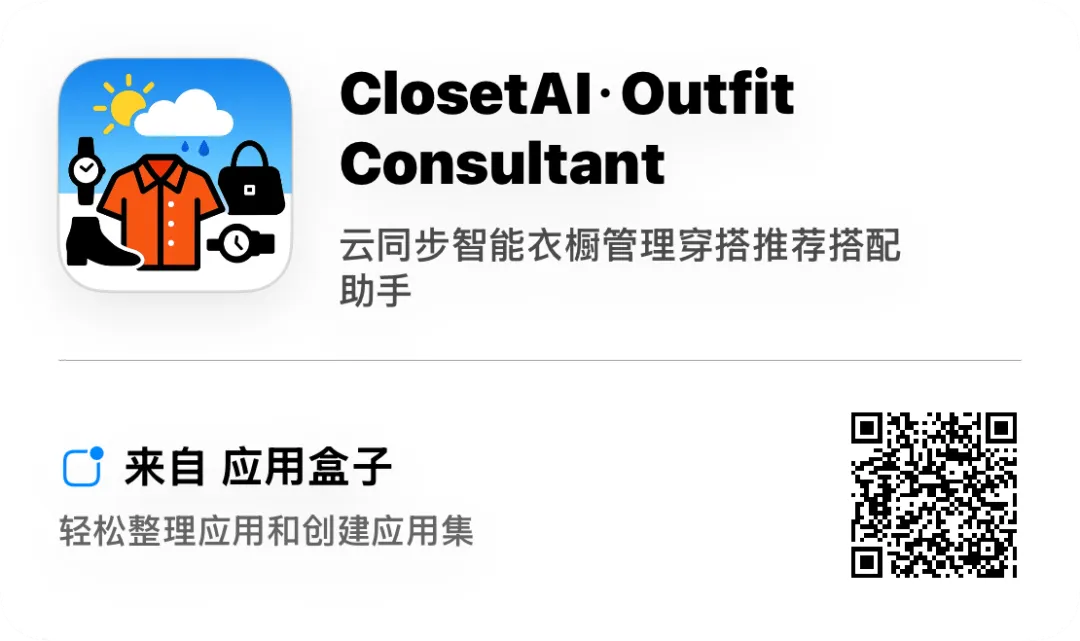应用介绍:结合天气、工作日还是周末、喜好、穿着次数、色彩搭配等智能推荐穿搭。