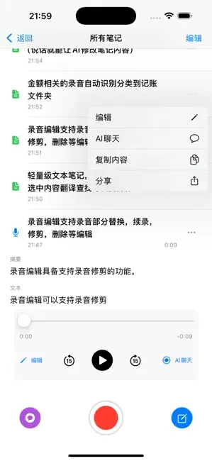 介绍:一款智能语音笔记应用,集录音、转录、编辑与AI对话于一体。支持录音剪辑、替换、续录,语音输入可直接让AI修改文本笔记,并智能识别金额自动归类记账。所有处理在设备本地完成,无数据上传,确保高效安全的隐私保护。 ![]() ![]() ![]() 长按二维码 识别下载 |