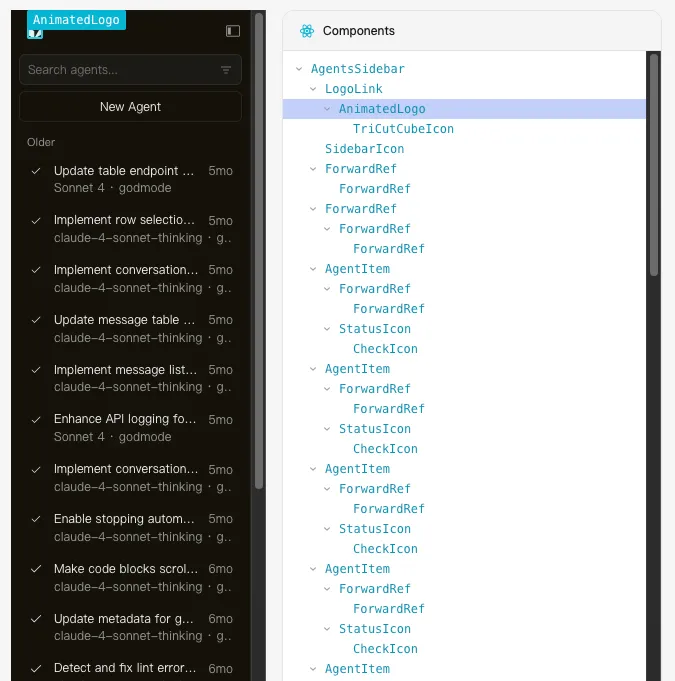 我将向你展示如何在没有源码或仓库访问权限的情况下,从一个正在运行的 React 网站中 “获取” 任意组件 —— 只需要我们能在浏览器中打开该网站即可。比如,这里以 Cursor 网站的智能代理侧边栏为例。
