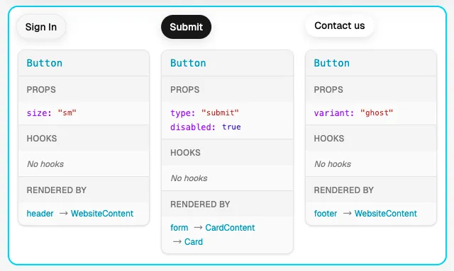 因此,不论页面上有多少个 Button,只要它们属于同一个组件,它们的 type 都完全相同。我们就可以用这个来把它们分到同一个 “桶” 里。