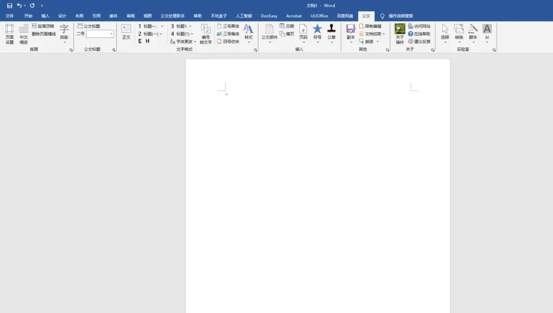 10.打开表格Word软件,点击“公文”,即可查看使用功能