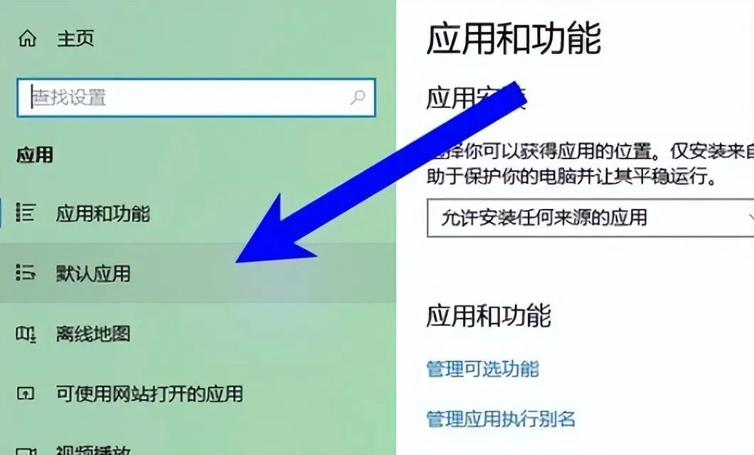 3、接着点击左侧的”默认应用”。