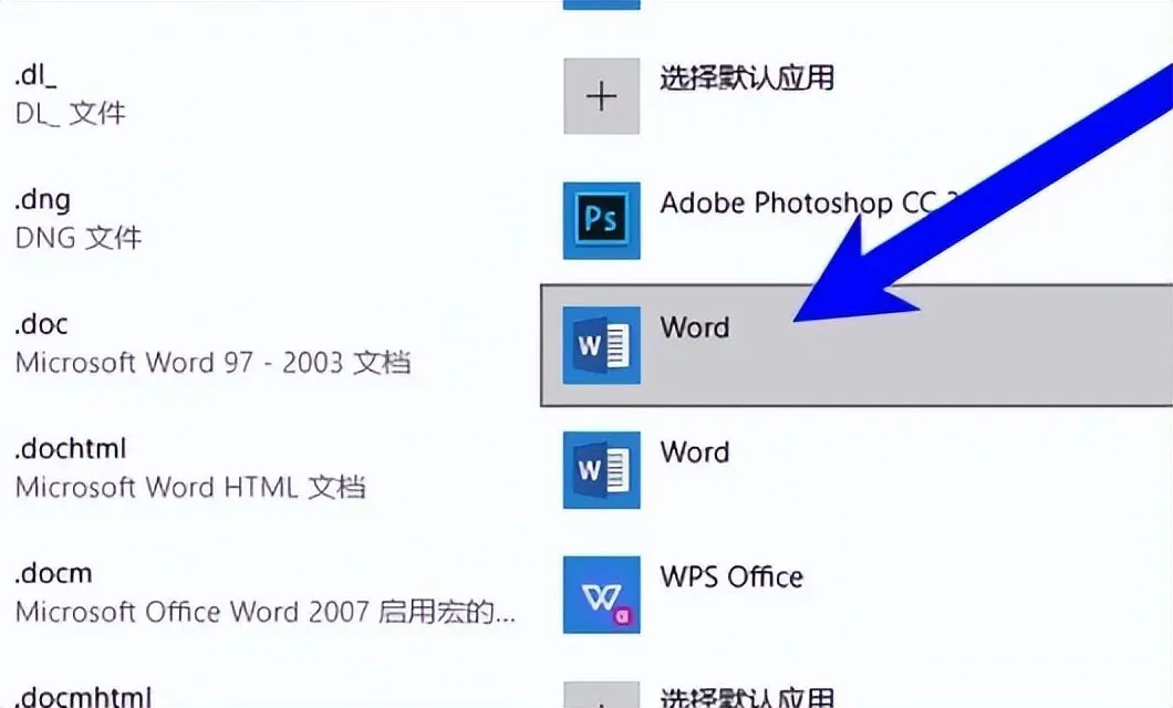 5、然后在其中找到办公软件的文件类型,点击以前设置的默认软件。