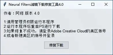 这是由吾爱大神阿修制作的一款可以下载滤镜修复的小工具,适用于Photoshop软件,简称PS设计软件。
