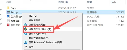 2.打开解压后的文件夹,鼠标右击【Setup】选择【以管理员身份运行】。