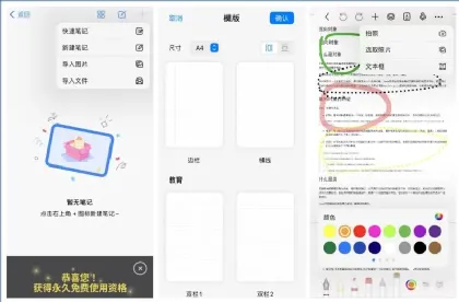 它支持强大的笔记编辑功能,包括:添加图片、添加文本框、添加录音、钢笔、荧光笔、圆珠笔、橡皮擦、套索、激光笔。