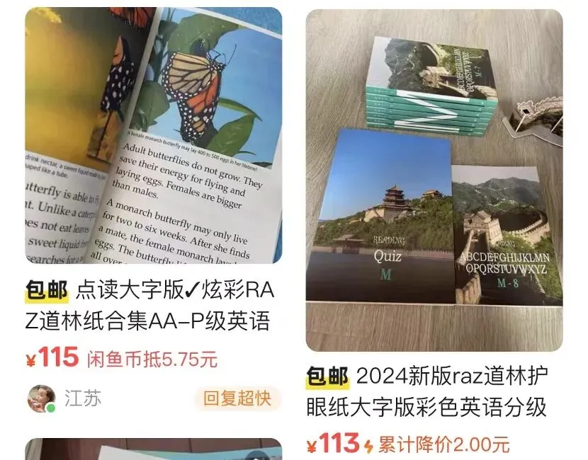 其实就是没有版权的自印书,内容都是从Reading A-Z网站下载来的。只能从某鱼购买,那些蓝标、星标,以及各种版本,就是不同印刷厂自己取的名字,内容都一样,差别在于印刷的纸张、质量和售价。 优点: 便宜,可以自己选择购买什么护眼纸/A4大字版。 缺点: 质量参差不弃,上一个级别买到不错的版本,下一个级别可能那个厂家不在了。