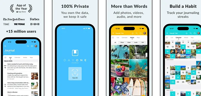 • 评价: 虽然 Apple 推出了自家的日志 App,但说实话,那玩意儿像个 Beta 版。Day One 才是金标准:自动抓取照片、位置、运动数据,支持端到端加密和音频录入。十年后,你不会在乎你发过什么推特,但你会无比珍视这些鲜活的回忆。