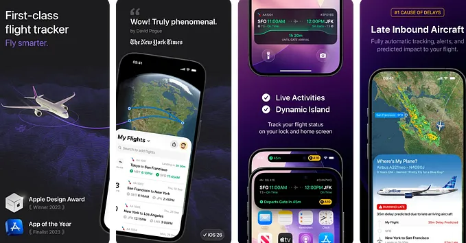 • 评价: 只要你一年飞超过三次,Flighty 就是刚需。它直接抓取民航局原始数据,通常比航司更早通知你延误或登机口变更。它的 Live Activities(实时活动) 适配简直是 iOS 典范,锁屏一看就能掌握登机进度。它把旅行焦虑转化成了掌控感。