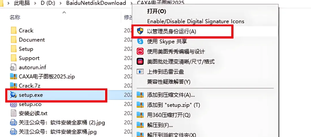 2.鼠标右击【Setup】安装程序,选择【以管理员身份运行】。