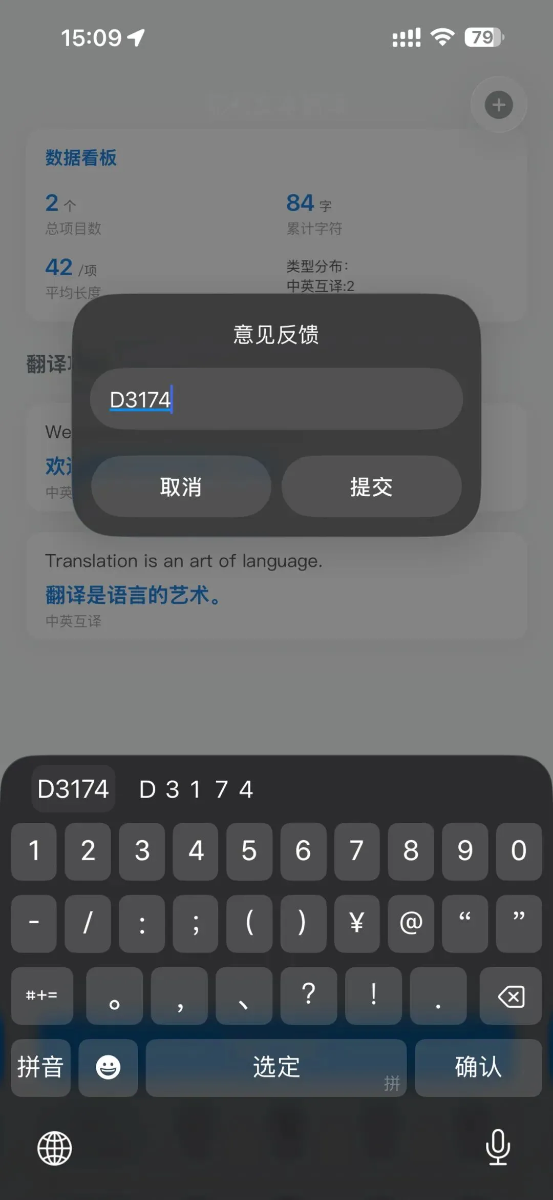2、意见反馈中输入D3174