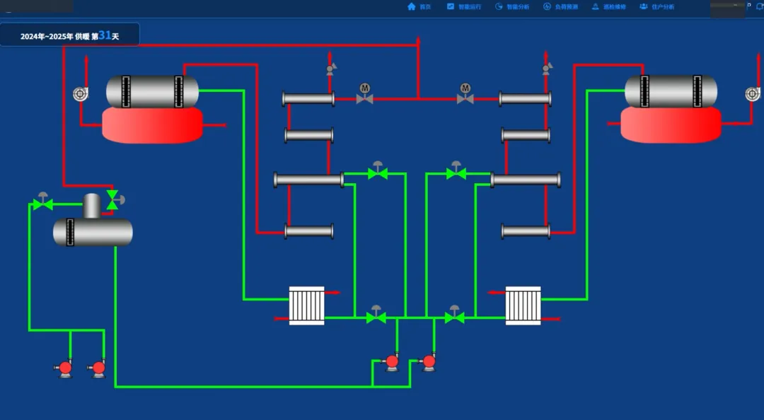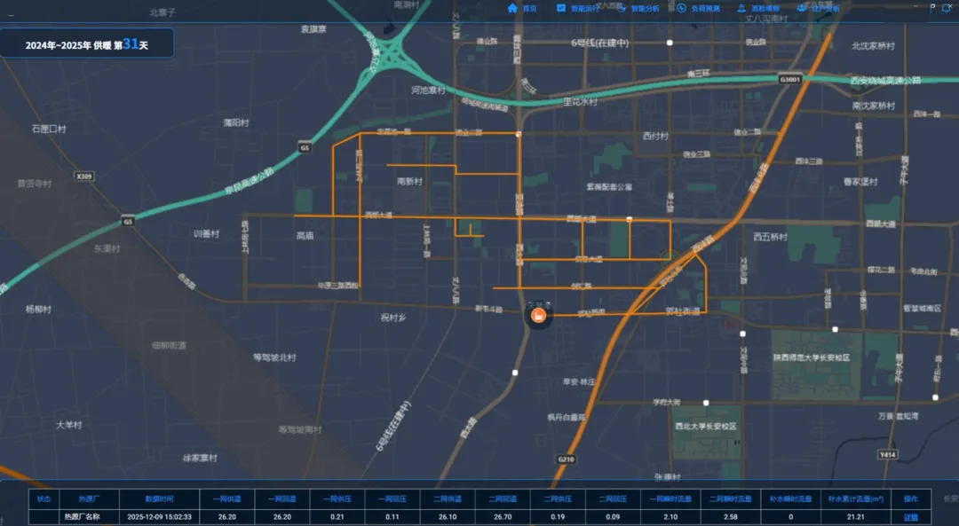 构建供热管网数字孪生模型,可视化展示管网运行状态,支持模拟调度操作,预判调度效果,避免盲目调度导致的能源浪费或室温不均; -