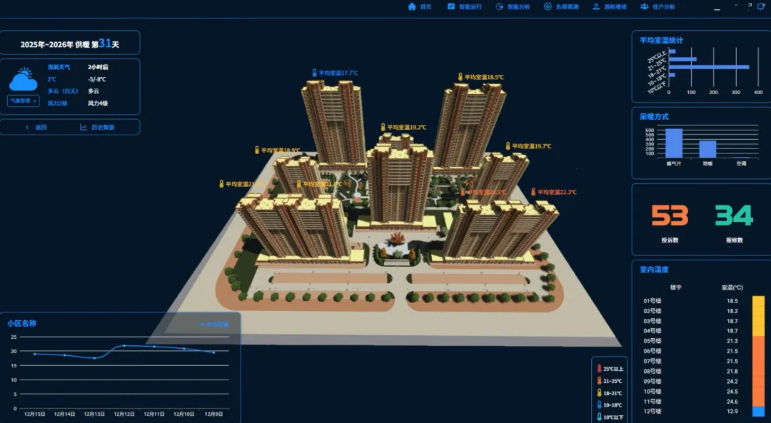 源码交付!智慧供热全流程管理平台,室温监测、热力调度、故障预警、能耗分析一键实现